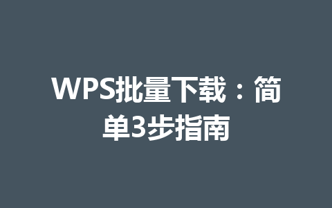 WPS批量下载:简单3步指南